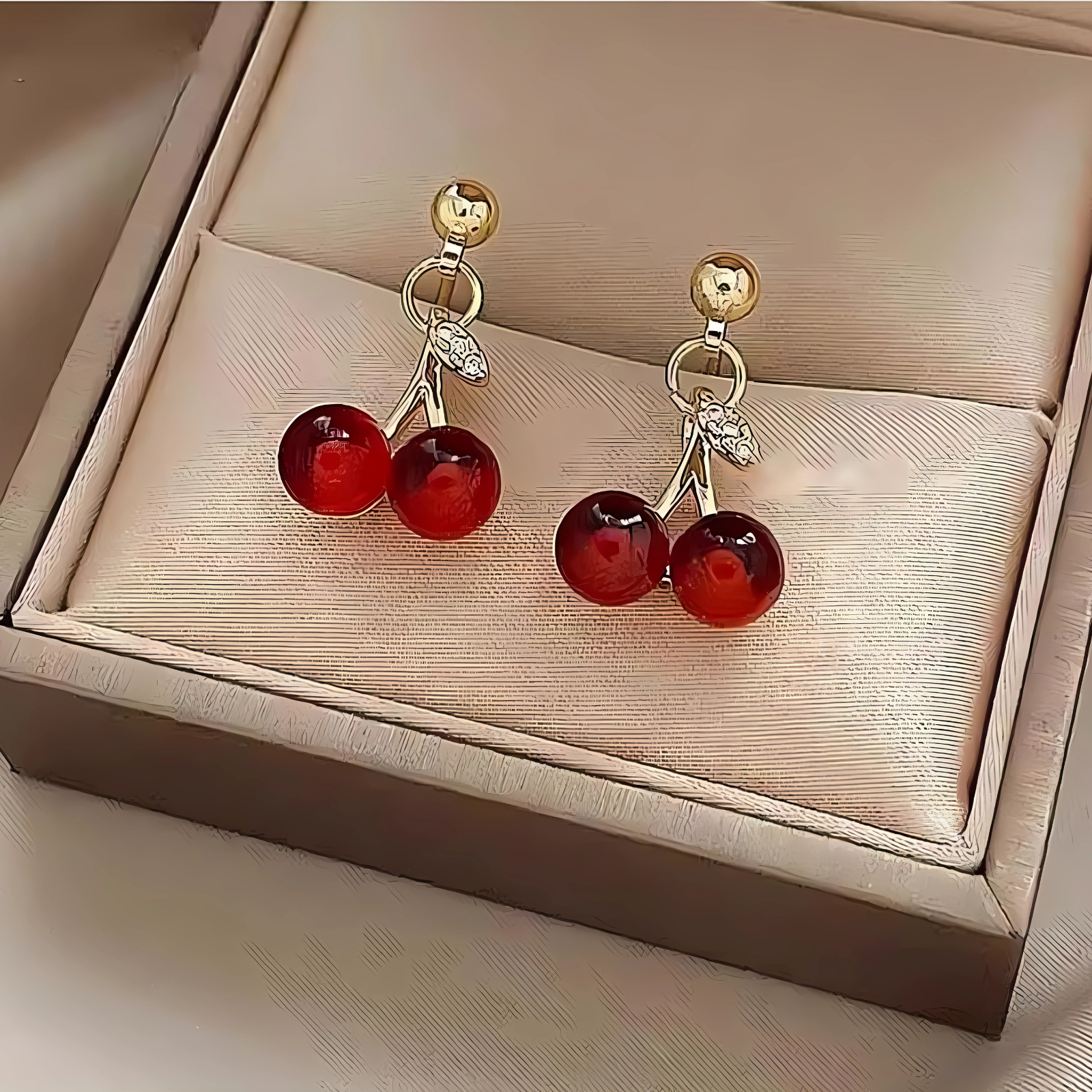 Double Cherry Dangle Earrings / Cute Cherry Drop Earrings