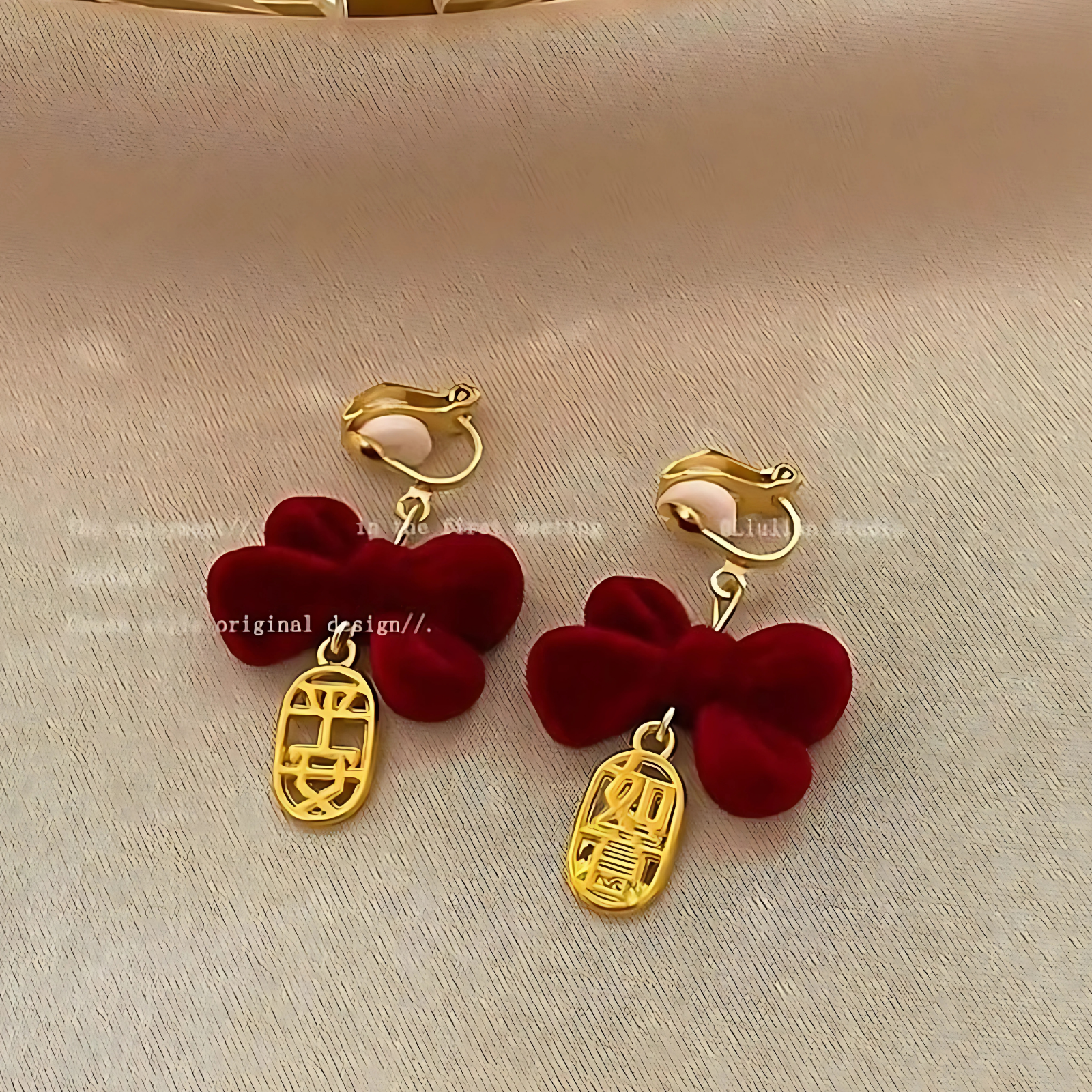 Gold Tone Red Velvet Cloud Lantern Clip Ons
